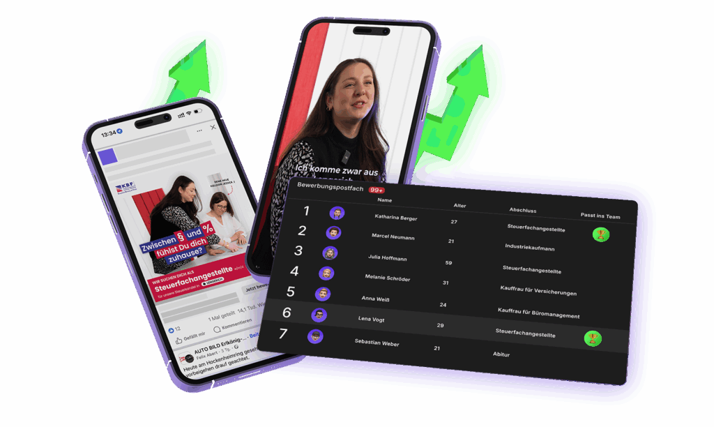 Wir platzieren Ihre Kanzlei als seriösen Arbeitgeber genau dort, wo potenzielle Steuerfachangestellte heute unterwegs sind – auf Facebook, Instagram und TikTok. Diese Kanäle nutzen wir gezielt, um Ihre Kanzlei authentisch, professionell und ansprechend darzustellen. Immer mit dem Fokus, Ihr Team und Ihre Steuerkanzlei ins beste Licht zu rücken und qualifizierte Bewerber anzusprechen.